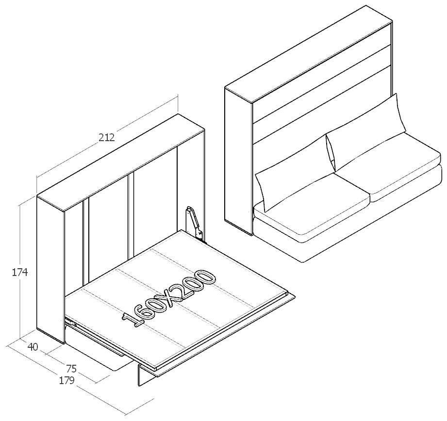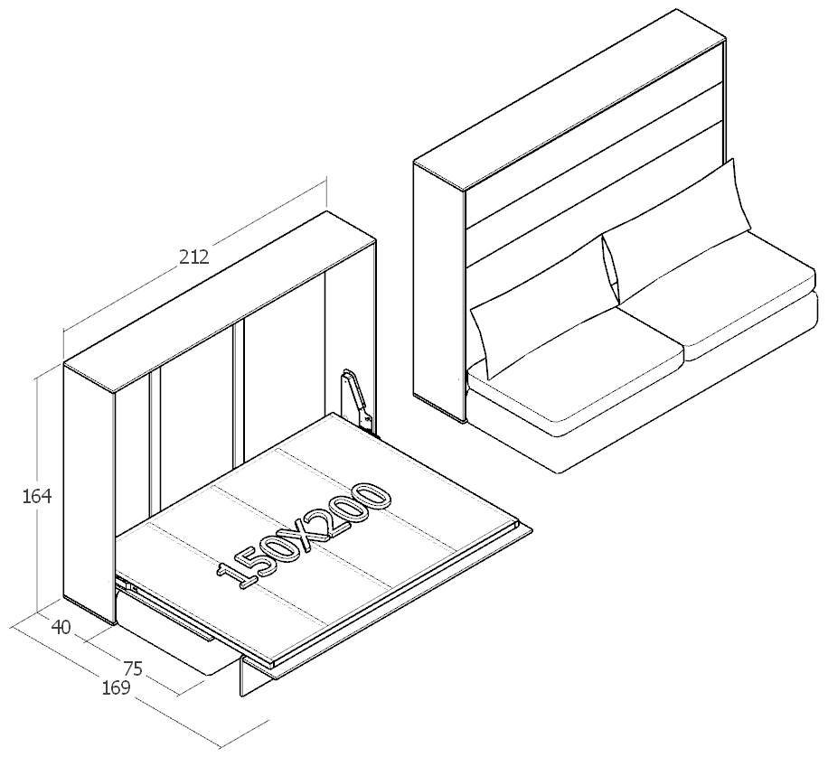 Çift Kişilik Duvar Yatağı Yatay – Koltuklu